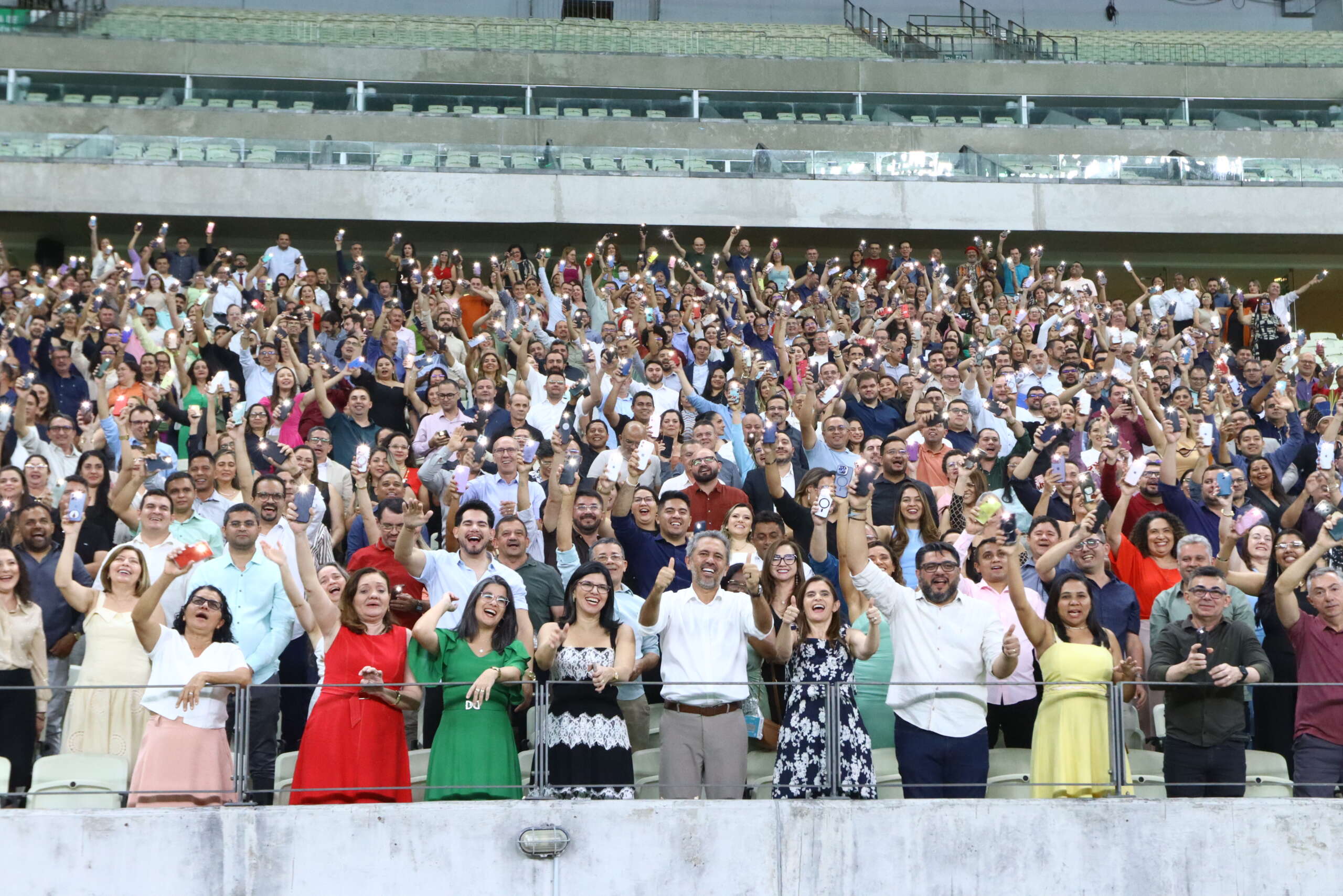 No Dia do Diretor Escolar, celebrado nesta terça-feira, 12 de novembro, o governador Elmano de Freitas se reuniu com mais de 700 profissionais da rede pública estadual de ensino para homenageá-los pelo trabalho de liderança. O encontro ocorreu na Arena Castelão, em Fortaleza, nesta noite. Na ocasião, também participaram a secretária da Educação, Eliana Estrela, e outras autoridades.