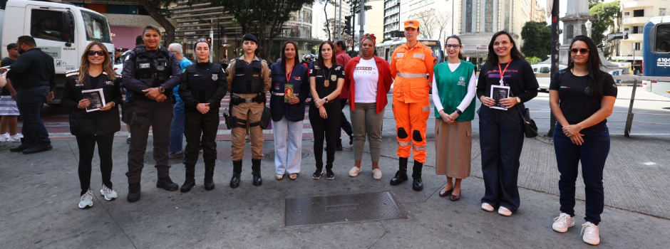 Ação realizada na Praça Sete chama a atenção da população de Belo Horizonte para o mês de combate à violência contra a mulher