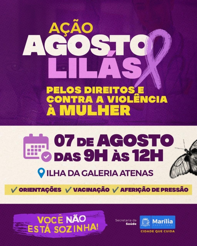 A Prefeitura de Marília, por meio das secretarias municipais da Saúde e da Assistência Social e Cidadania, promove durante o mês de agosto uma ampla programação com diversas ações de conscientização sobre os direitos e contra a violência à mulher.