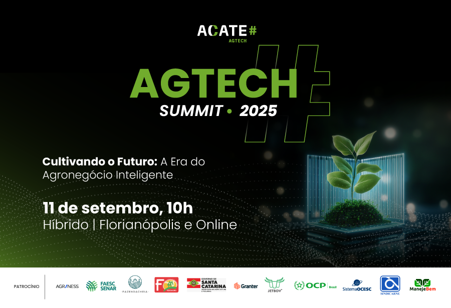 “O AgTech Summit é um evento que pretende cultivar um agronegócio mais inteligente, moderno, produtivo, sustentável e competitivo para o futuro, dessa forma, vamos destacar as tecnologias que já fazem da transformação digital no campo uma realidade”, explica Valder Zacarkim, Diretor da Vertical AgTech da ACATE. O grupo organizador do encontro soma mais de 50 empresas catarinenses que desenvolvem soluções inovadoras para as áreas de agropecuária, agricultura, silvicultura e pescado.