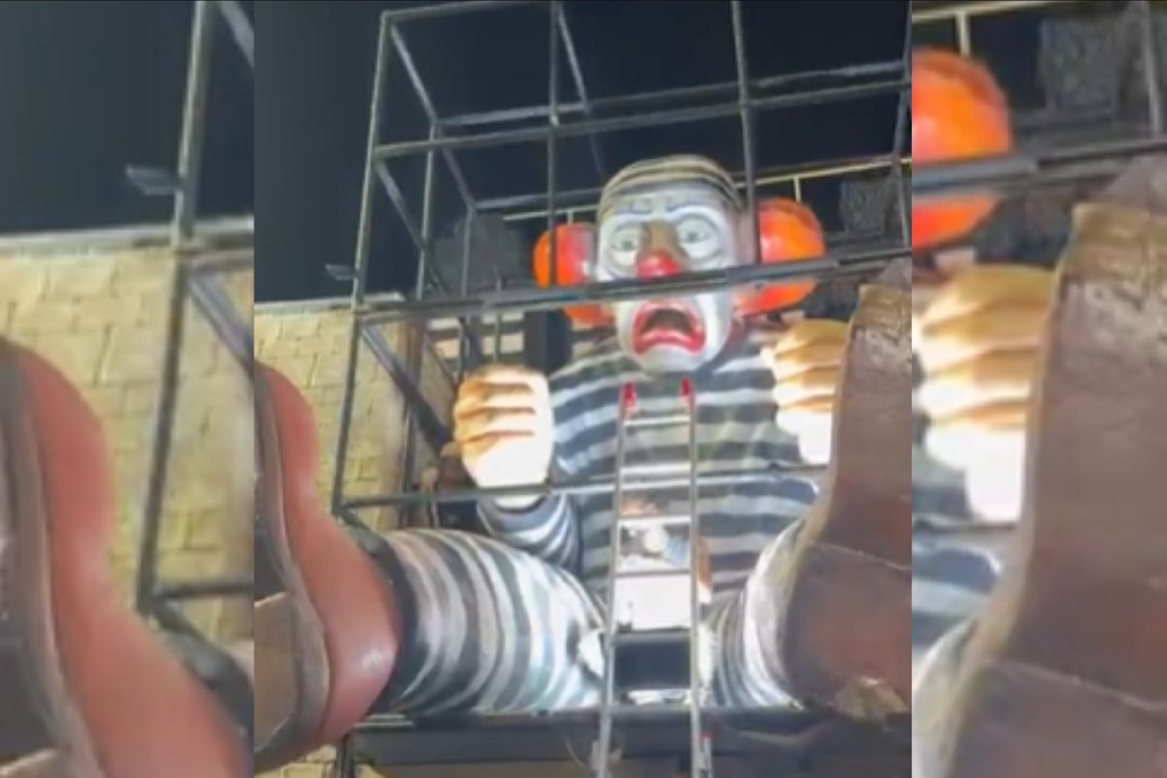 Com feição triste e espantada, a alusão a Bolsonaro o apresenta como um preso vestindo trajes listrados, comumente utilizados para representar presidiários na dramaturgia. O palhaço também utiliza uma tornozeleira eletrônica com sinais de violação, assim como ocorreu no episódio que levou à revogação da prisão domiciliar do ex-presidente, em novembro do ano passado.