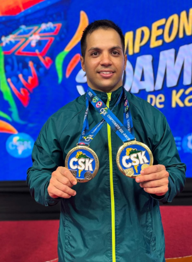 Christian conquistou ouro na categoria Kata Equipe e bronze no Kata Individual, consolidando seu lugar entre os melhores do esporte. Na disputa por equipes, ele competiu ao lado de Gabriel Hara, 21 anos, e Gustavo Guimarães, 19, garantindo o tricampeonato para o Brasil. “Foram dias intensos, com confrontos contra adversários de alto nível, que elevaram o nível técnico e tornaram essa vitória ainda mais especial”, comemorou ele.