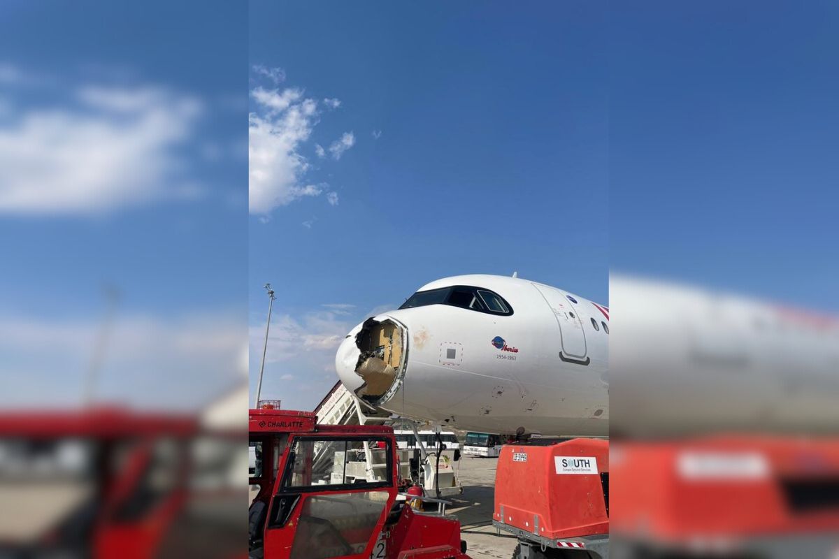 Nas imagens divulgadas por passageiros em redes sociais, é possível ver as imagens da parte da frente do avião completamente destruída. Após o incidente, o piloto precisou retornar imediatamente ao aeroporto de Barajas.