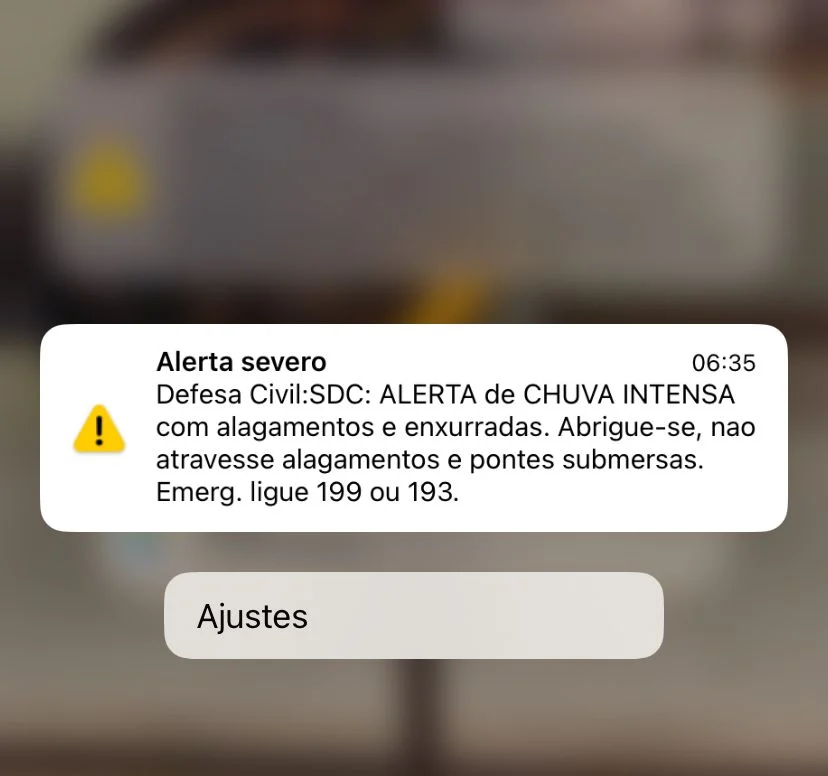 A Defesa Civil estadual enviou alertas por celular logo nas primeiras horas da manhã, pedindo para a população evitar transitar em ruas alagadas ou áreas de risco e acompanhar os alertas oficiais durante episódios de chuva intensa.