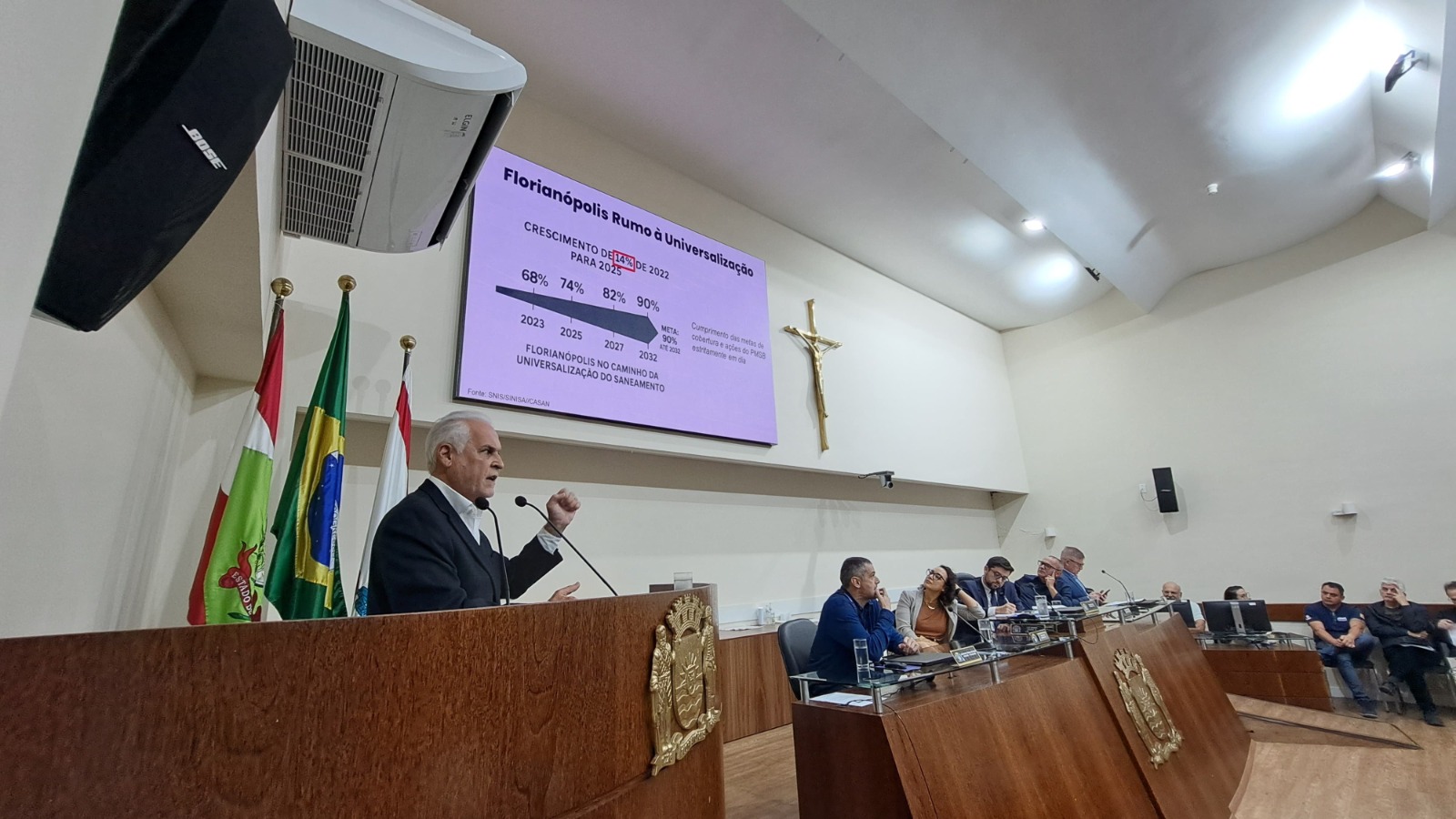 Presidente Edson Moritz durante Audiência Pública na Câmara Municipal de Florianópolis. Fotos: Divulgação / Casan