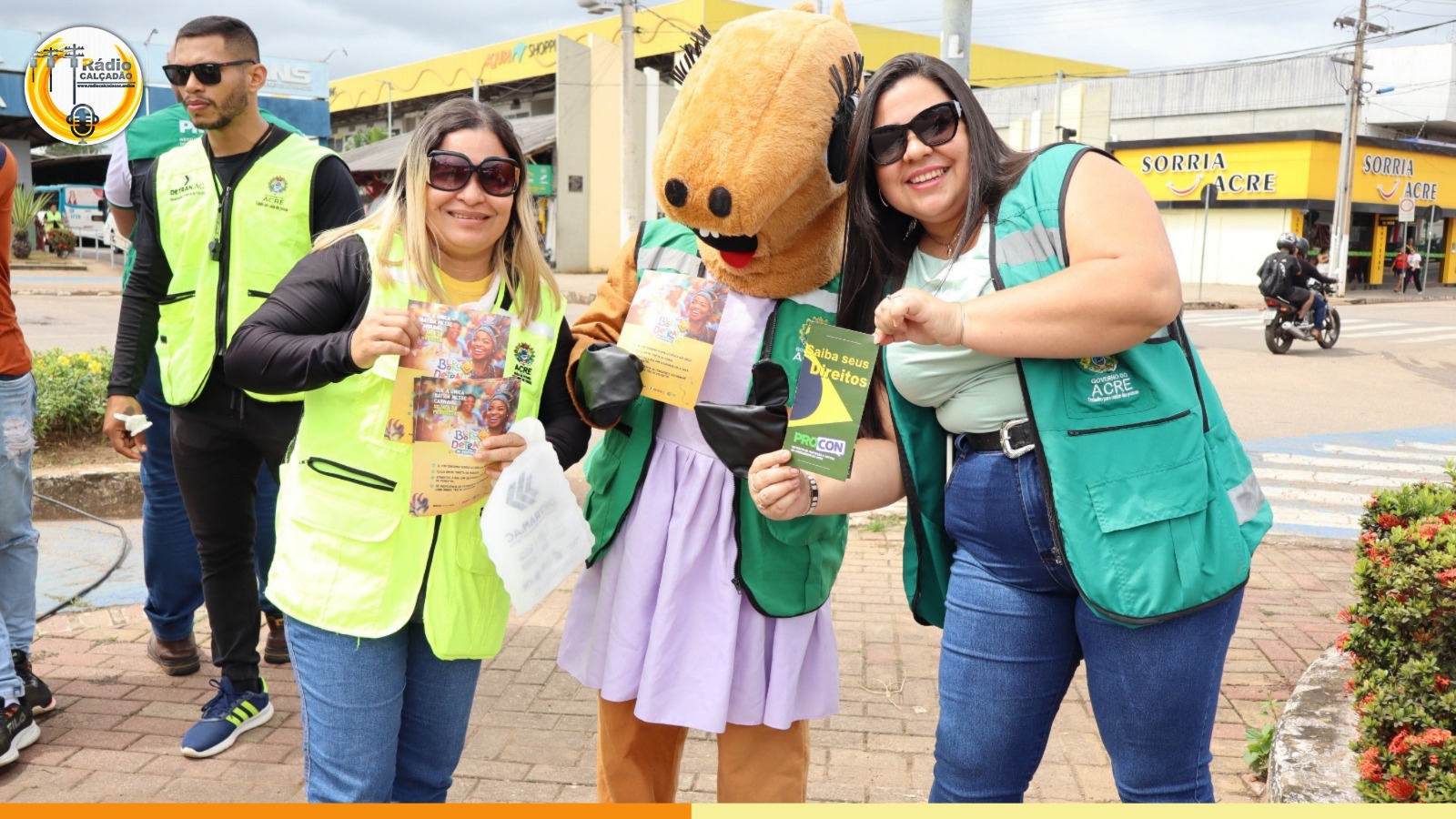 O Instituto de Proteção e Defesa do Consumidor (Procon), em parceria com o Departamento Estadual de Trânsito (Detran) e a Rádio Calçadão, realiza, durante o período de Carnaval, a Parada Calçadão, em frente ao Terminal Urbano, com uma ação preventiva de conscientização voltada ao consumo responsável e à segurança no trânsito. Equipes dos órgãos parceiros do estado e comunicadores da rádio comunitária se uniram para orientar diretamente a população. Foto: cedida A mobilização reuniu equipes dos órgãos parceiros e comunicadores da rádio comunitária para orientar diretamente a população, com distribuição…
