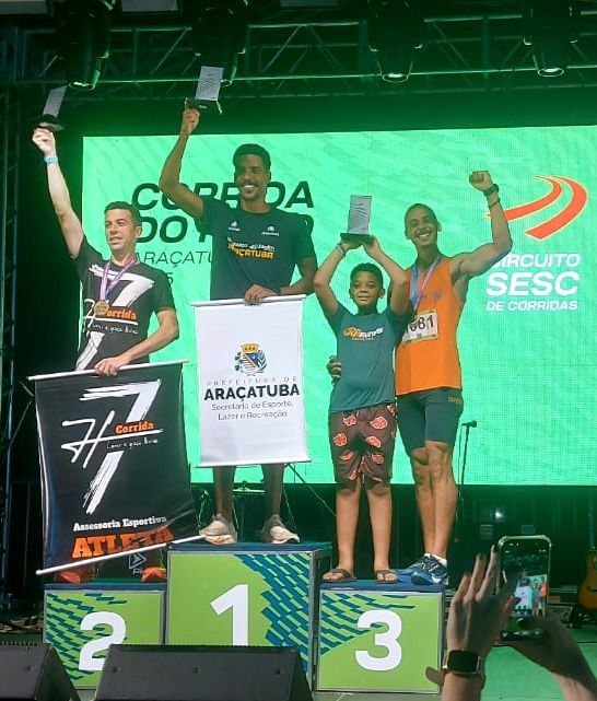 Publicado em 08 de dezembro de 2025, às 17:32 Caio Juan Cardoso Batista conquistou o ouro e Humberto Vasconcelos Aidar a prata na categoria Geral 6Km Masculino Atletas araçatubenses marcaram presença no pódio da 30ª Edição Noturna da Corrida do Fogo, realizada no sábado (6), no Centro Social Urbano (CSU) de Araçatuba. Na corrida de 6 km masculino, os atletas da Secretaria Municipal de Esporte, Lazer e Recreação (SMELR) conquistaram os dois primeiros lugares: Caio Juan Cardoso Batista foi o vencedor geral com o tempo de 20’26”, seguido por Humberto…