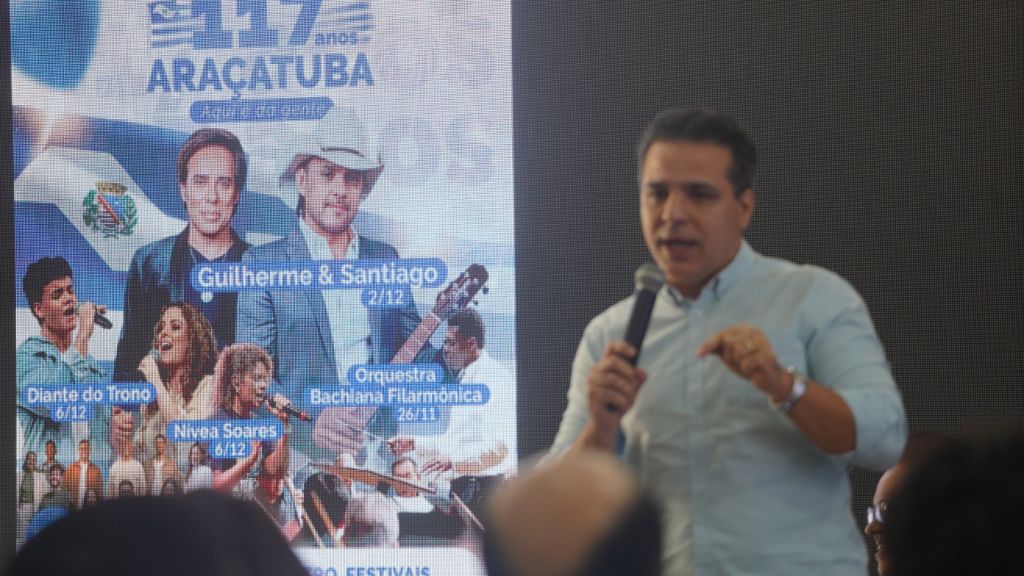 O prefeito Lucas Zanatta anunciou a programação durante coletiva de imprensa A Prefeitura de Araçatuba, por meio da Secretaria Municipal de Cultura, lançou oficialmente na terça-feira (11), na Biblioteca Municipal Rubens do Amaral, a programação especial em comemoração aos 117 anos de fundação do município e do tradicional Natal Iluminado 2025. Os eventos foram anunciados pelo prefeito Lucas Zanatta e pela vice-prefeita Nice Zucon durante coletiva de imprensa. Estavam presentes a primeira-dama, Priscila Lopes Zanatta, secretários municipais, vereadores Sol do Autismo, Damião Brito e Hideto Honda, além de representantes das…