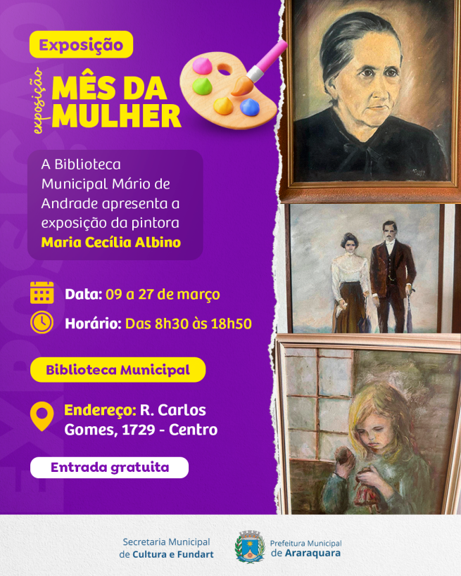 A Secretaria Municipal de Cultura e a Fundart realizam uma homenagem a Maria Cecília Albino (27/09/1929 – 08/12/2007) e à sua trajetória ligada à história das Artes Visuais de Araraquara. No próximo dia 9 de março, na Biblioteca Municipal Mário de Andrade, será terá início a exposição “Homenagem à artista Maria Cecília Albino”, que pode ser visitada gratuitamente até o dia 27 de março.A exposição reúne obras em pintura de Maria Cecília, oriundas de coleções particulares e do acervo da Pinacoteca Mário Ybarra de Almeida – espaço que leva o…