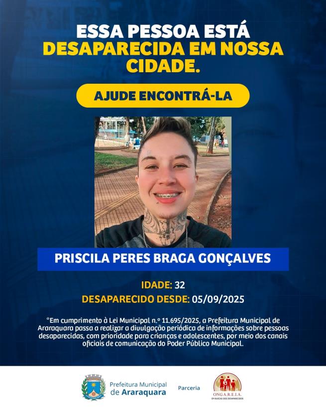 Em cumprimento à Lei Municipal nº 11.695/2025, a Prefeitura de Araraquara passa a realizar a divulgação periódica de informações sobre pessoas desaparecidas no município, com prioridade para casos envolvendo crianças e adolescentes. A ação será veiculada nos canais oficiais de comunicação do Poder Público Municipal.A iniciativa é desenvolvida em parceria com a ONG Areia, que desde 1988 atua na busca e divulgação de pessoas desaparecidas em Araraquara e região. A cooperação contribui para dar visibilidade aos casos e aumentar as chances de localização dos desaparecidos.As divulgações trazem informações essenciais para…