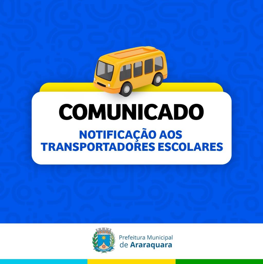 A Prefeitura Municipal, por meio do setor competente, NOTIFICA todos os transportadores escolares devidamente cadastrados acerca da obrigatoriedade de retirada do Selo de Autorização Municipal, conforme determina a Lei Municipal nº 8.432/2015.Informamos que o prazo final para a retirada do referido selo foi estendido, em caráter improrrogável, até o dia 20 de fevereiro de 2025.Ressalta-se que o não cumprimento da presente notificação implicará na situação irregular do transportador, sujeitando-o às sanções administrativas cabíveis, conforme previsto na legislação municipal vigente.Diante do exposto, solicitamos que os transportadores compareçam ao setor responsável dentro…