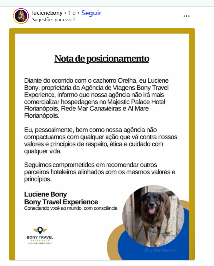 Ler MaisMorte do Cão Orelha| COMPROMISSO E ÉTICA: Bony Travel Rompe Silêncio e Reforça Filtro em Parcerias após Incidentes.