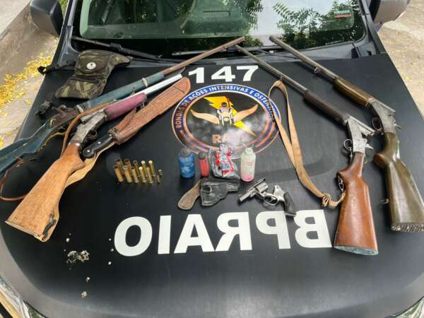 Uma ofensiva da Polícia Militar do Ceará (PMCE) resultou, nesse domingo (3), na prisão em flagrante de um suspeito em Novo Oriente, Área Integrada de Segurança 16 (AIS 16) do Estado. Na ocasião, ainda foram apreendidas cinco armas de fogo e munições. O homem foi colocado à disposição da Justiça em uma unidade da Polícia Civil do Estado do Ceará (PCCE). Os policiais militares do Comando de Policiamento de Rondas de Ações Intensivas e Ostensivas (CPRaio) foram acionados, por volta das 12h30, para atender uma denúncia de disparos de arma…