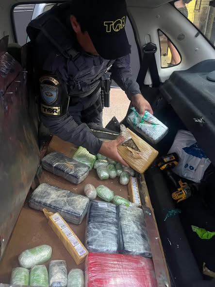 Em uma ação conjunta da Polícia Militar Rodoviária de Presidente Prudente com a FICCO-SP, a “Operação Impacto” resultou em uma grande apreensão de drogas e mercadorias de origem estrangeira na Rodovia Presidente Castello Branco, em Iaras/SP, na tarde de 16 de janeiro. Durante abordagem a um veículo Chevrolet/Classic, com placas de Curitiba/PR, a equipe TOR da 2ª Cia encontrou um fundo falso sob o banco traseiro. No compartimento estavam escondidos 2,204 kg de maconha, 3,516 kg de haxixe e 7,810 kg de cocaína. Além dos entorpecentes, o porta-malas continha 18…