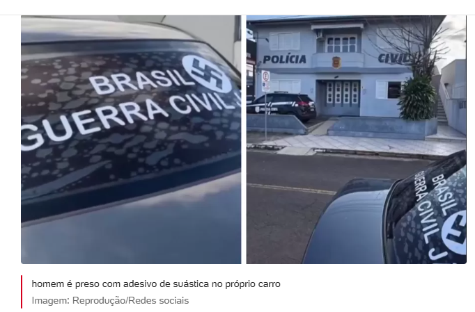 “Brasil, Guerra Civil já!”: Carro com suástica nazista choca moradores e mobiliza força policial em Santa Catarina. O criminoso de 70 anos não teve escapatória! ARARANGUÁ (SC) – O que era para ser uma quinta-feira comum transformou-se em um cenário de horror e indignação no extremo sul catarinense. Um homem de 70 anos, cuja identidade ainda é mantida sob sigilo, decidiu rasgar o pacto da civilidade e circular livremente com o símbolo mais sangrento da história da humanidade estampado no vidro de seu carro: a suástica nazista. O flagrante absurdo…
