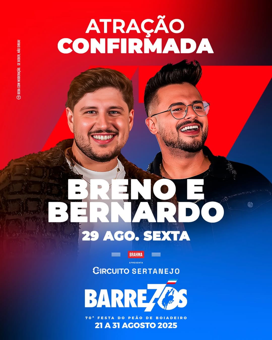 Ler MaisBreno & Bernardo estão confirmados na 70ª edição da Festa do Peão de Barretos