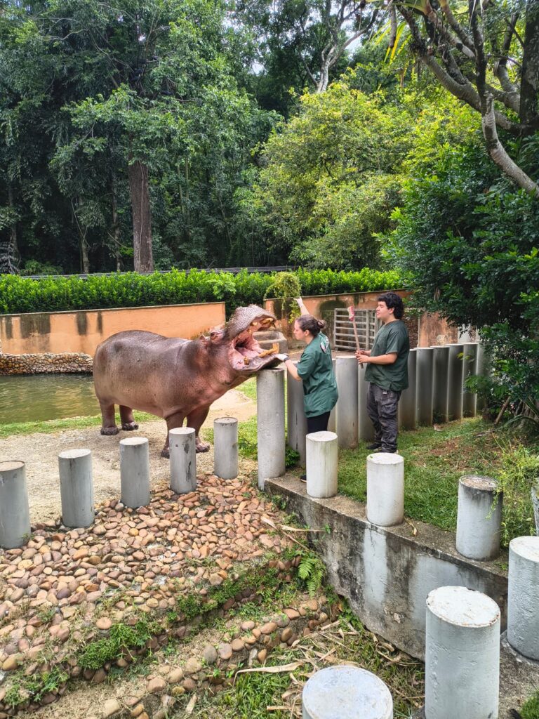 Fotos: Sema No último sábado (28), o Parque Zoológico Municipal “Quinzinho de Barros” promoveu uma programação especial em comemoração ao Dia Internacional do Hipopótamo (15 de fevereiro). A atividade, que reuniu visitantes de todas as idades, aliou informações e curiosidades sobre a espécie, além de sensibilização sobre a importância do descarte adequado de lixo eletrônico. O ponto alto do evento ocorreu em frente ao recinto do casal de hipopótamos-comuns (Hippopotamus amphibius), Yara e Yuri. O público teve a oportunidade de acompanhar uma sessão de condicionamento animal, técnica moderna na qual…