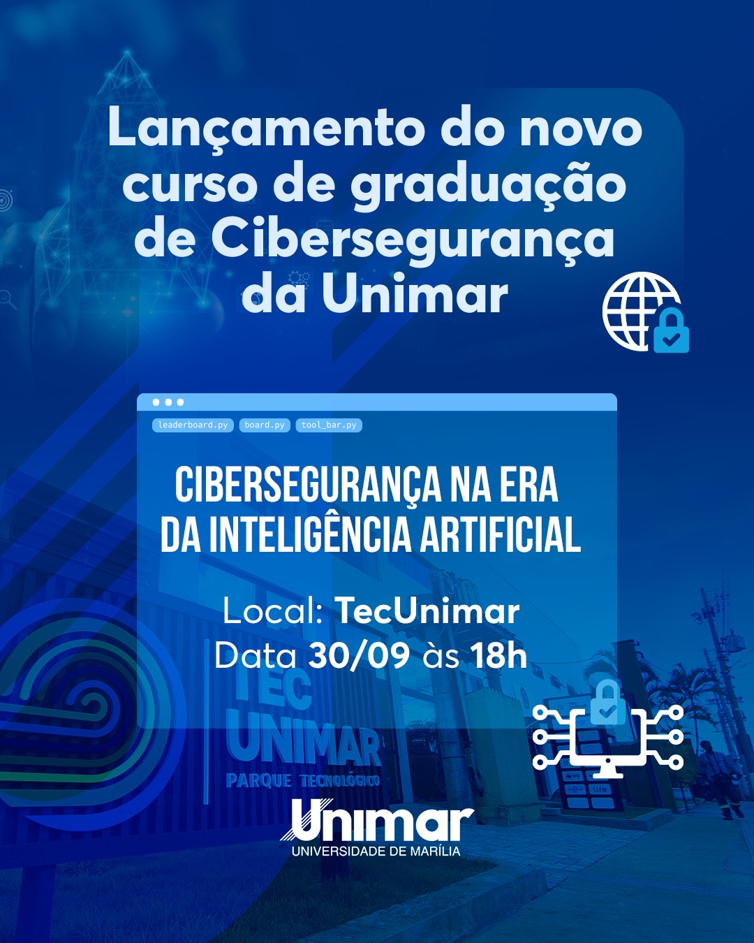 A Universidade de Marília (Unimar) anuncia o lançamento do curso de graduação em Cibersegurança, reforçando sua posição de destaque no cenário educacional e tecnológico do país. O evento de apresentação acontecerá no próximo dia 30 de setembro, às 18h, no TecUnimar – Parque Tecnológico, com a temática “Cibersegurança na Era da Inteligência Artificial”. O coordenador dos cursos de tecnologia da Unimar, Prof. Dr. Caio Saraiva Coneglian, destaca a importância dessa iniciativa para o mercado e para a formação dos acadêmicos. “Vivemos uma era em que os dados se tornaram o…