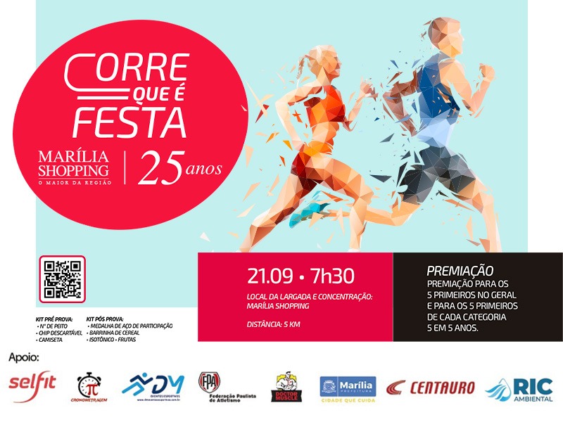 Ler MaisInscrições para a corrida “Corre que é Festa” do Marília Shopping são prorrogadas até 12 de setembro