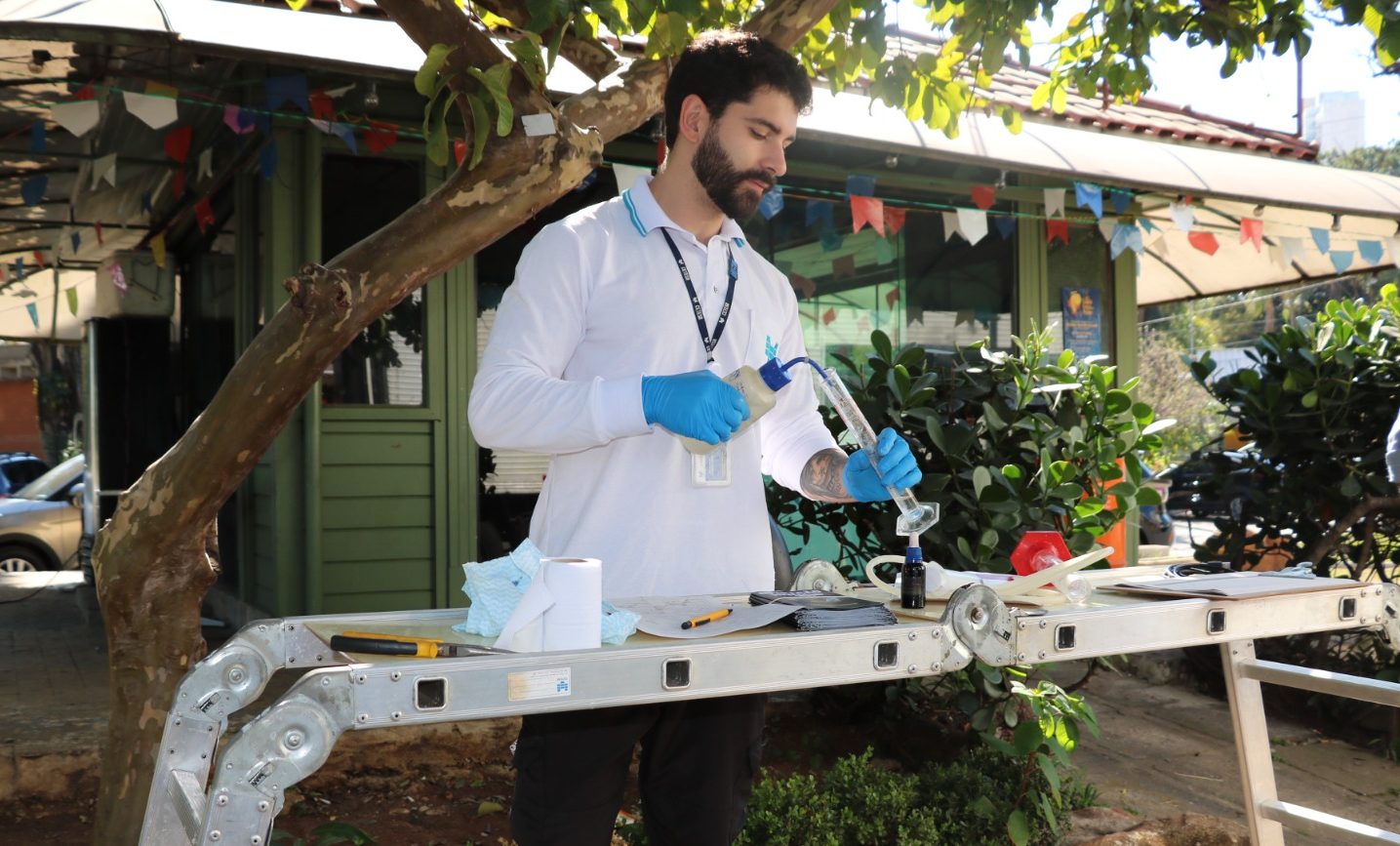 Entre os procedimentos realizados, destacou-se o teste de qualidade do ARLA 32, fluido essencial para o funcionamento do sistema antipoluição dos caminhões a diesel fabricados a partir de 2012. Técnicos da Cetesb coletaram amostras diretamente dos veículos e aplicaram um reagente químico que muda de cor para indicar a conformidade do produto: o tom azul aponta que o fluido atende às especificações exigidas, enquanto tonalidades rosadas indicam possíveis irregularidades, como produto vencido, adulterado ou armazenado de forma inadequada.