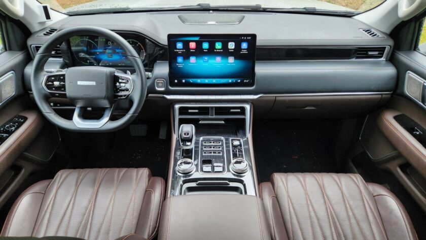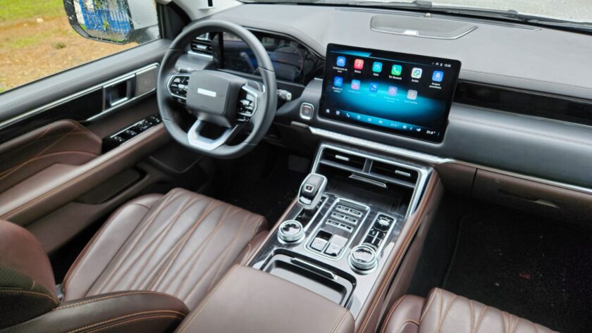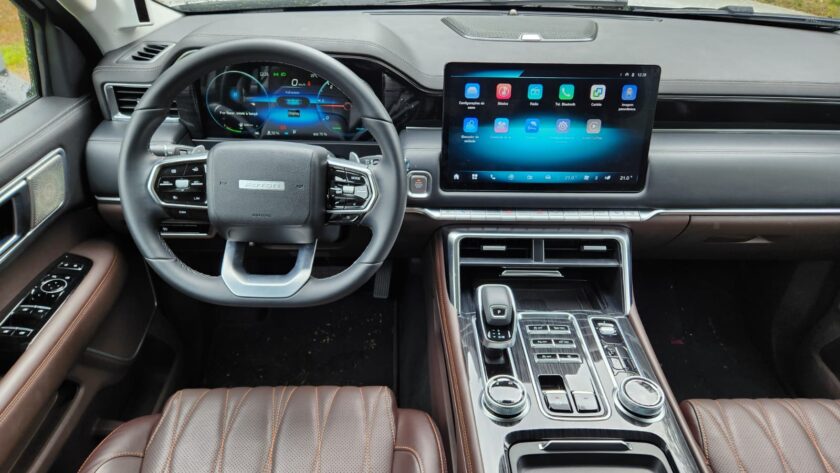 O trajeto do test-drive foi estruturado de modo a expor a Tunland V7 a diferentes situações. No primeiro trecho, enfrentamos o trânsito da capital paulista, onde pude observar o funcionamento da central multimídia de 14,6 polegadas e do painel digital de 12,3 polegadas. A conectividade com Apple CarPlay e a possibilidade de carregamento por indução do celular mostraram como a picape está equipada para o uso diário em centros urbanos. O conforto interno, apoiado em bancos com ajustes elétricos e acabamento premium, tornou o tempo no tráfego mais funcional.