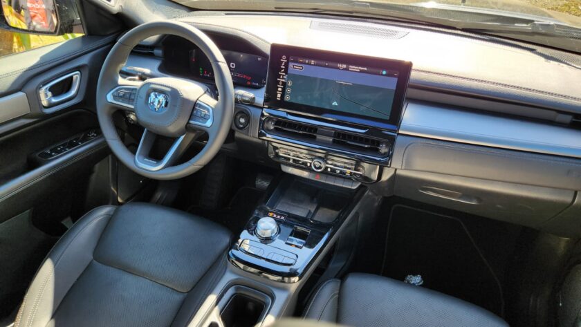 O desempenho em rodovia surpreendeu. A suspensão absorve bem as irregularidades e mantém a carroceria estável, mesmo com a caçamba carregada. Em ultrapassagens, o conjunto motor-câmbio oferece agilidade, e o nível de ruído interno é reduzido. A cabine conta com isolamento acústico eficiente, enquanto itens como ar-condicionado dual zone, painel digital de 10,3” e multimídia de 12,3” com pareamento sem fio garantem conforto ao motorista e aos passageiros.