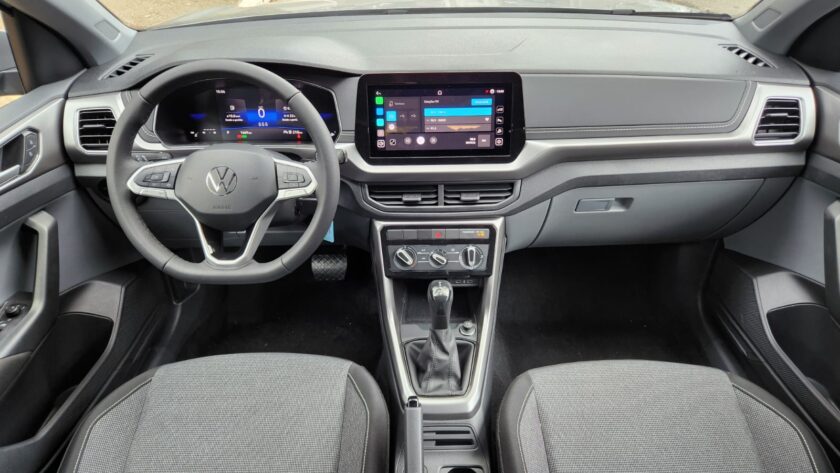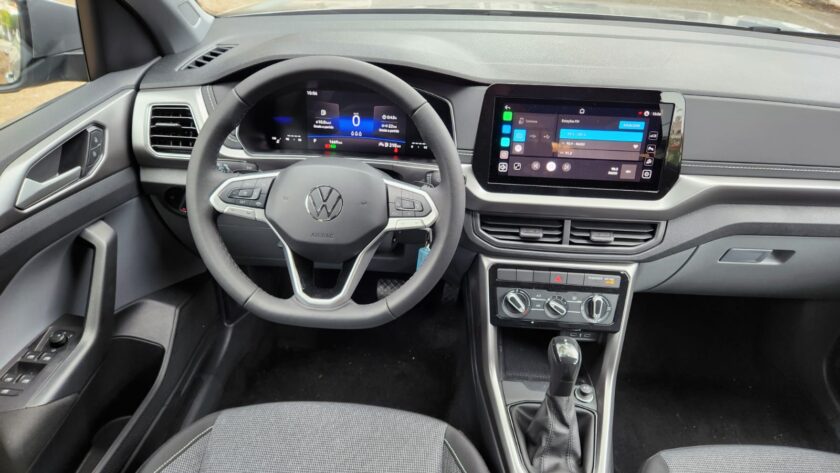 Na rodovia, o desempenho manteve o nível esperado. A estabilidade em velocidades mais altas transmite segurança ao condutor, e o consumo se mostrou condizente com a proposta de eficiência do conjunto. O painel digital de 8 polegadas contribuiu para monitorar informações de forma clara, enquanto a central multimídia VW Play, com tela de 10,1 polegadas, ampliou as opções de conectividade, permitindo o uso prático do APP-Connect.