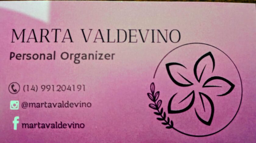 Marta Valdevino, Personal Organizer, Colunista, Palestrante, Apresentadora do quadro “Minuto com Marta Valdevino Programa De Corpo e Alma (TV Mais Marília), Especializada em Organização e Limpeza, Apaixonada por Organização.