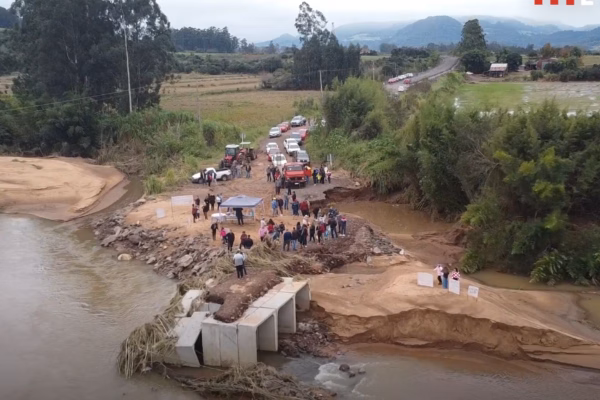 Chuvas no RS: área rural faz bolo de 1 ano sem reconstrução de ponte