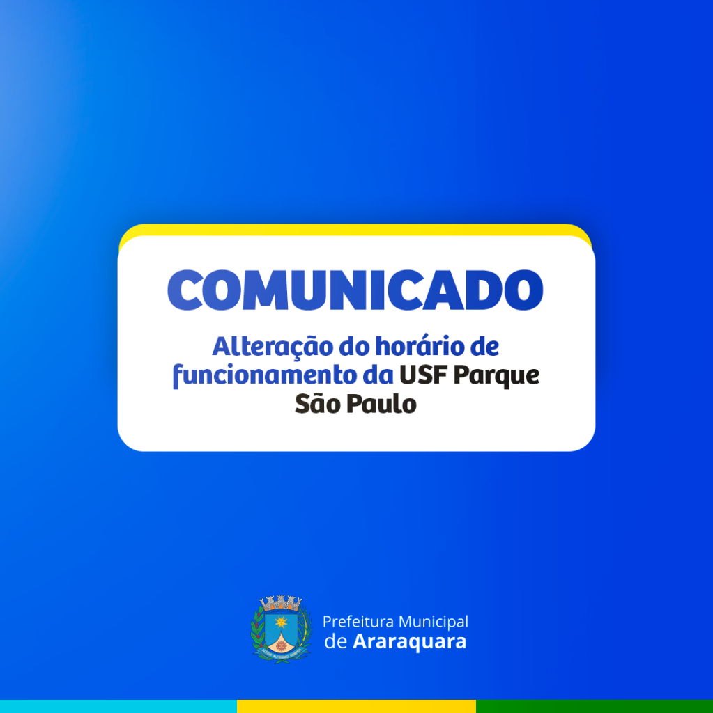ARARAQUARA| Comunicado de mudança de horário em USF 24/02/202624/02/2026 admin Compartilhe: O novo horário será das 07h30 às 16h30, de segunda a sexta-feira.Contamos com a compreensão de todos. Prefeitura Municipal de Araraquara