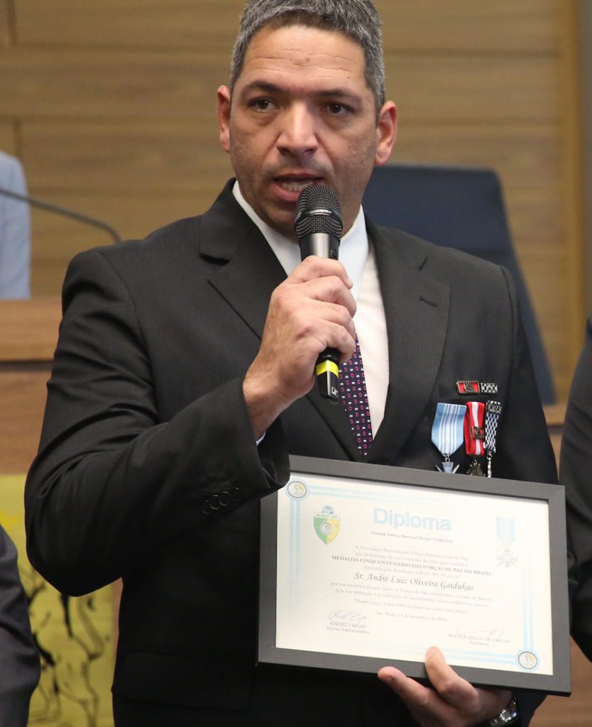O condutor socorrista do André Gaidukas do Serviço de Atendimento Móvel de Urgência (Samu) de Sorocaba foi homenageado, nesta terça-feira (15), na Câmara Municipal, com a medalha de honra da Associação Brasileira das Forças Internacionais da Paz (ABFIP), órgão integrante da Organização das Nações Unidas (ONU), pela contribuição nos resgates da enchente no Rio Grande do Sul, que ocorreu em abril e maio do ano passado.