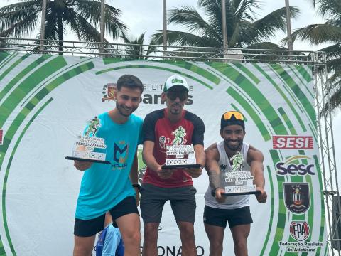 Na prova masculina, Maurício Santana correu na ponta desde o início, cruzando a linha de chegada em 33min22s. Matheus Presotto (Major Elite Run) ficou em segundo lugar, com 33min44s, seguido de Waltamir Soares (MF Racing), com 34min13s. “Feliz com o resultado. Após um período meio que afastado das competições, por lesão, voltei a encaixar os treinos aos poucos e, graças a Deus, consegui a vitória nessa última etapa, mas já pensando no próximo ano, em novos desafios e objetivos”, vibrou Maurício, que no domingo anterior já havia vencido a Santos Run. “Esse ano não deu para defender o título aqui no Santista, mas em 2026 quero voltar bem e tentar o tricampeonato”, reforçou o vencedor deste domingo, que já faturou o Santista em 2022 e 2024.