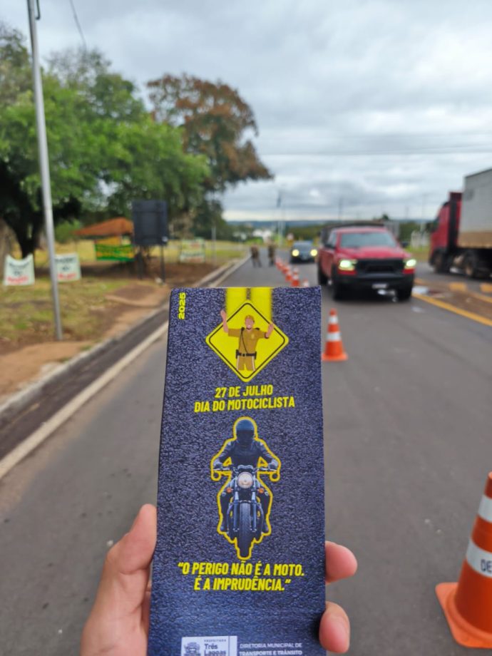 Em alusão ao Dia do Motociclista (27 de julho) e ao Dia do Motorista (25 de julho), a Prefeitura de Três Lagoas, por meio da Diretoria de Trânsito (DEPTRAN) da Secretaria Municipal de Infraestrutura, Transporte e Trânsito (SEINTRA), em parceria com a Polícia Rodoviária Federal (PRF), realizou uma blitz, na tarde de segunda-feira (28). A ação aconteceu nas proximidades do Posto Fiscal, na saída para o Estado de São Paulo.