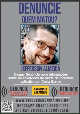 O Disque Denúncia do Rio de Janeiro divulgou um cartaz intitulado “Quem matou?” para pedir informações sobre os envolvidos no assassinato do motorista de aplicativo em Costa Barros, na zona norte da capital do estado durante a madrugada de quinta-feira (3/7).
