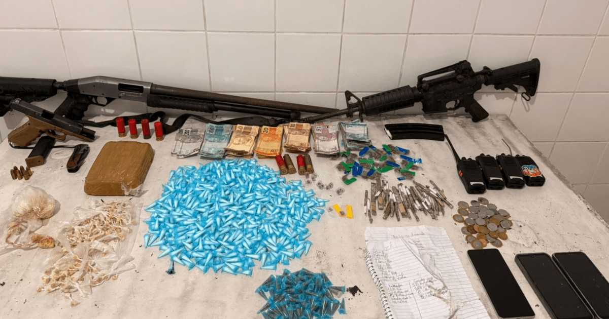 Um dos suspeitos foi localizado ferido no interior do mangue. Com ele, foram apreendidos crack, cocaína e porções de maconha, dinheiro, aparelhos celulares, rádios comunicadores e anotações relacionadas ao tráfico de drogas, além de uma espingarda calibre 12. Ele foi encaminhado ao hospital, onde permaneceu preso sob escolta policial.