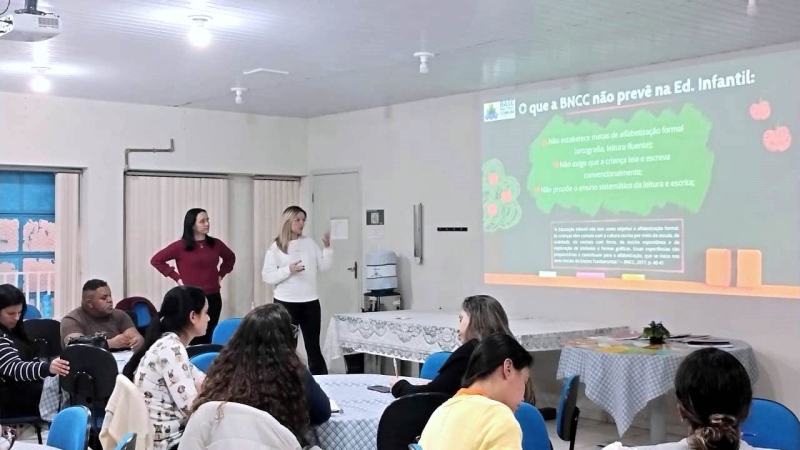 O último encontro foi realizado na quarta-feira (dia 13), das 18h às 20h, na oficina pedagógica da Secretaria Municipal da Educação. A atividade formativa contou com a presença de professores do último ano da Educação Infantil e teve o objetivo de refletir sobre a importância dessa etapa no processo de letramento e alfabetização na idade certa, considerando um processo contínuo e progressivo de desenvolvimento.