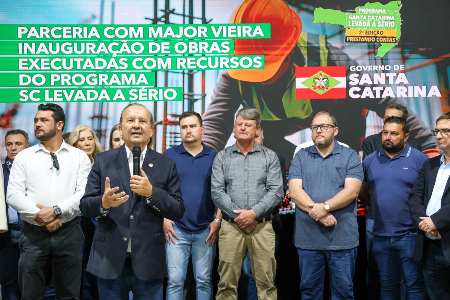 Além das entregas, o governador e a prefeita de Major Vieira, Aline Ruthes, assinaram três ordens de serviço orçadas em um total de aproximadamente R$ 1,5 milhão. Os documentos autorizam a pavimentação da rua Francisco Santos Veiga, a construção de um barracão pré-moldado para remate de gado e um barracão pré-moldado para a Secretaria Municipal de Obras de Major Vieira.