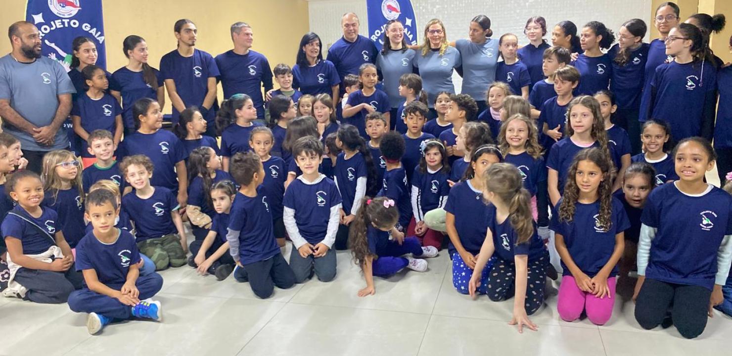 Voltado para crianças e adolescentes de 4 a 14 anos, o Projeto Gaia atende alunos da rede pública e particular, todos residentes no Município, que praticam ginástica artística duas vezes por semana, no contraturno escolar.