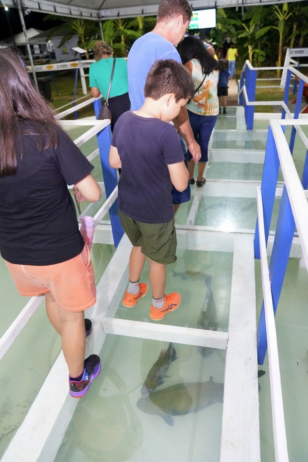 O visitante inicia o percurso pela área da piscicultura, onde são apresentados os peixes regionais e os produtos derivados da pesca roraimense. Em seguida, o público conhece a cultura da banana, com demonstrações de plantio e explicações sobre as variedades cultivadas no Estado, além do espaço de forrageiras, que mostra os diferentes tipos de capins utilizados na alimentação do rebanho.