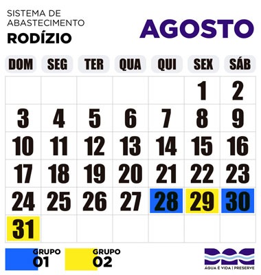 Dias com abastecimento: quinta-feira (28), sábado (30), segunda-feira (1) e assim sucessivamente.