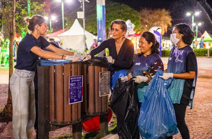 “Esse ano a empresa está com o desafio de fazer o melhor gerenciamento de resíduos sólidos do Festival, para destinar a maior parte desses resíduos orgânicos à compostagem e os materiais recicláveis serão doados às famílias e às pessoas que são os agentes de reciclagem que trabalham e vivem desse comércio na cidade. Nós estaremos com uma tenda no CMU, na Praça do Peixe e na Praça do Rádio. Nós teremos uma equipe passando em todos os locais, inclusive nos locais onde estão tendo oficinas, para fazer essa sensibilização sobre o descarte correto dos resíduos. A equipe vai estar circulando pelo Festival, esvaziando e coletando esses resíduos, todo o resíduo coletado será pesado e registrado a sua destinação. Então nós já temos uma rede de recicladores que ao final do dia estarão levando essas bags para os seus depósitos”.