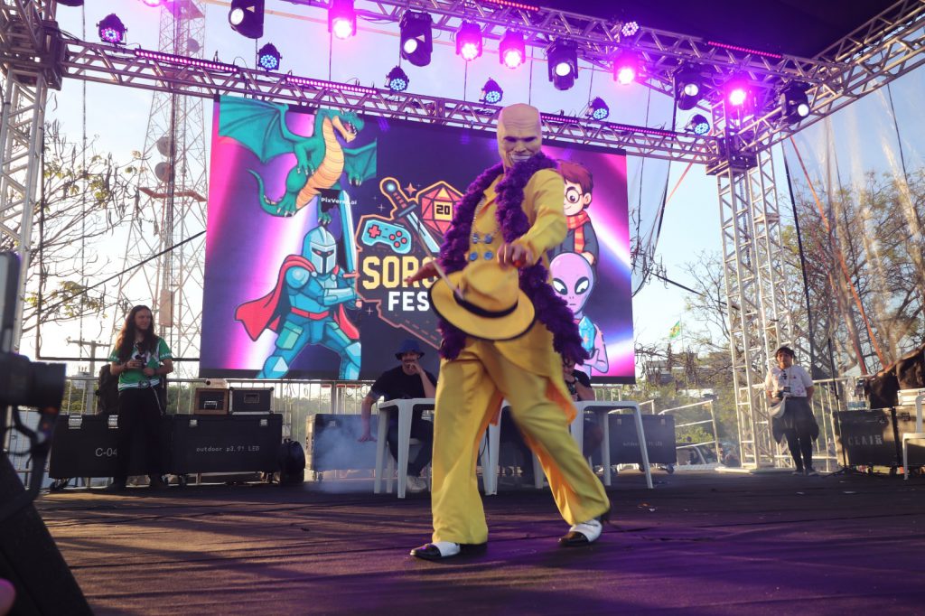 mundo dos games, cinema, séries e histórias em quadrinhos encontraram arte, tecnologia, criatividade e, acima de tudo, pertencimento. Entre as fantasias, tinha o Batman, Wandinha, Pikachu, Homem-Aranha, Máscara, Volverine, além de personagens de Star Wars, Harry Potter, Power Rangers, entre tantos outros.