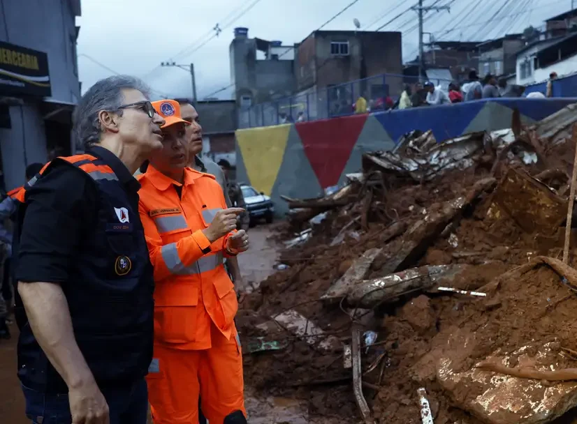 Juiz de Fora (MG), 24/02/2026 - Governador de MG, Romeu Zema, acompanha busca e resgate de pessoas em escombros de casas soterradas por lama após fortes chuvas. Foto: Tânia Rêgo/Agência Brasil