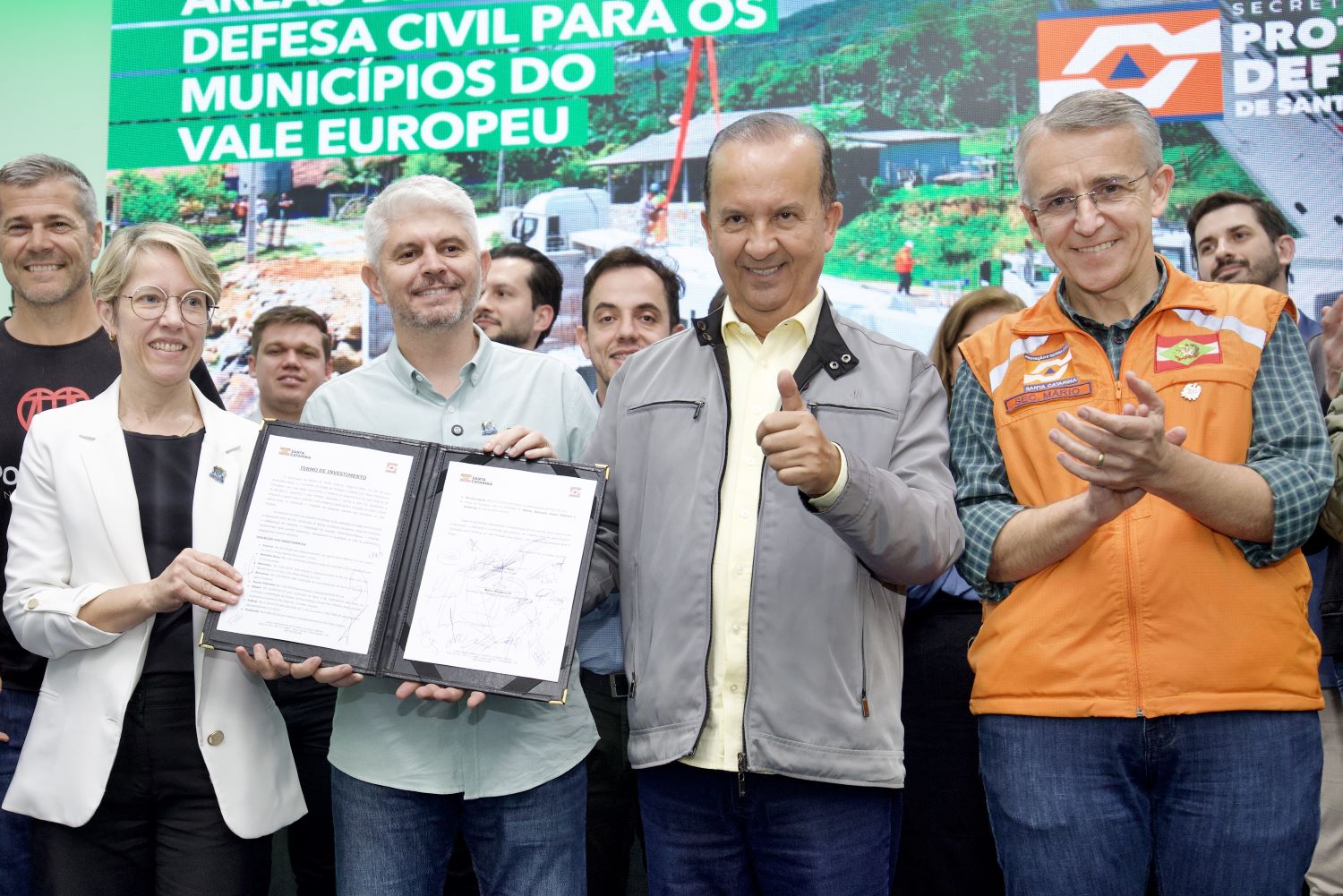 O governador Jorginho Mello anunciou nesta sexta-feira, 7, em Blumenau, um conjunto de investimentos de mais de R$ 23 milhões voltados ao fortalecimento das ações de prevenção, mitigação e resposta a desastres naturais nos municípios do Vale Europeu. O ato, realizado no auditório da Associação dos Municípios do Vale Europeu (Amve), contou com a presença do secretário de Estado da Proteção e Defesa Civil, Mário Hildebrandt, prefeitos, lideranças regionais e equipes técnicas.