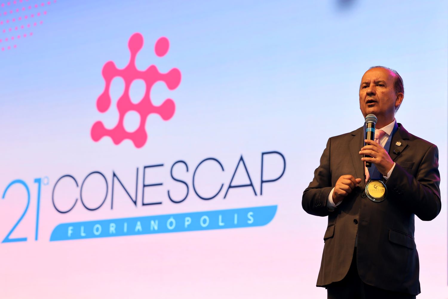 O governador Jorginho Mello esteve na 21º edição da Convenção Nacional das Empresas Contábeis e de Assessoramento, Perícias, Informações e Pesquisas (Conescap), nesta quinta-feira, 23, em Florianópolis. Em 2025, o evento tem como tema Potencializando pessoas em um Mundo Digital. Antes de palestrar para os convidados, o governador recebeu a medalha do Mérito Empresário de Serviços Brasil.