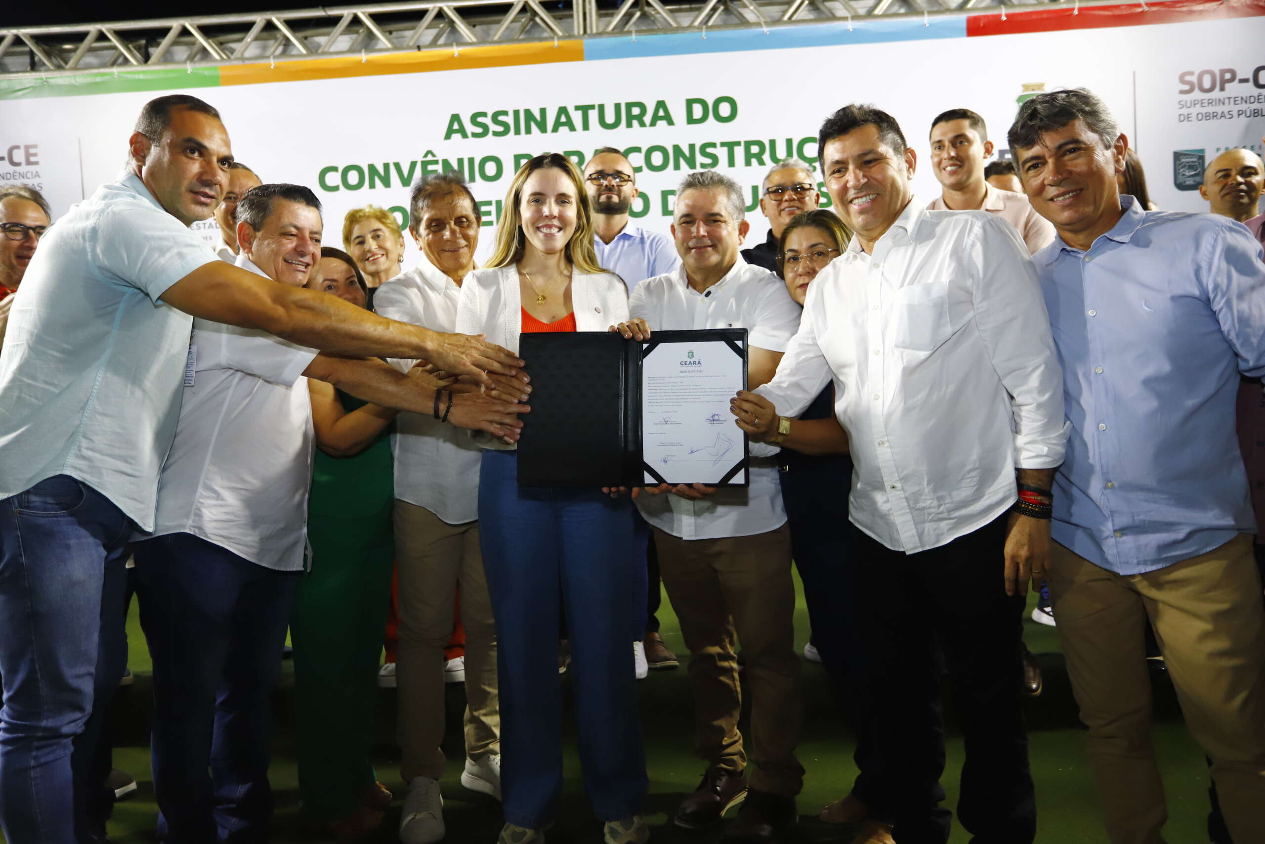 Representando o governador Elmano de Freitas na cerimônia de assinatura do convênio, a vice-governadora Jade Romero destaca o fortalecimento da parceria com os municípios.
