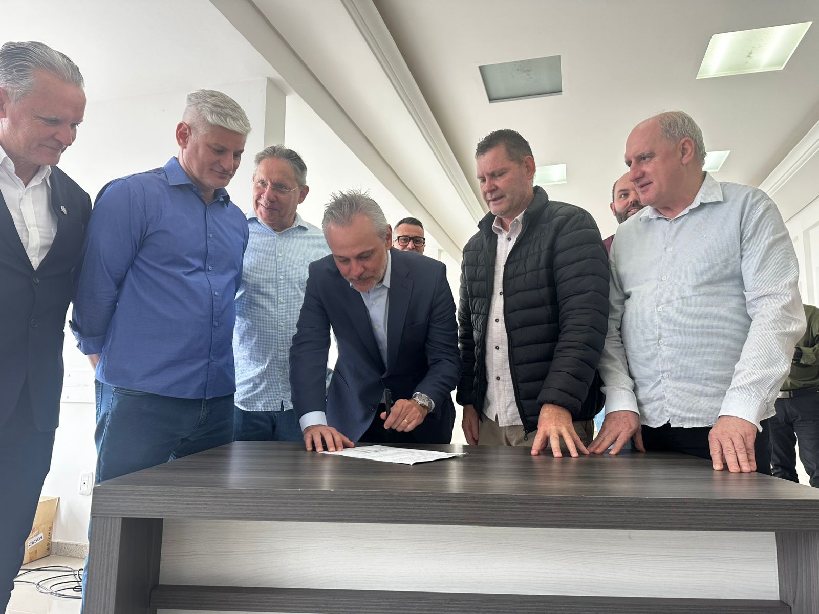 O Governo do Estado investirá R$ 3,6 milhões em obras de revitalização do Aeroporto Olavo Cecco Rigon, em Concórdia. O convênio para o repasse dos recursos foi assinado pelo secretário de Portos, Aeroportos e Ferrovias (SPAF), Beto Martins, e pelo prefeito do município Edilson Massocco, nesta quinta-feira (9/10). As obras realizadas contemplarão a fresagem e recapeamento da pista de pouso e decolagem.