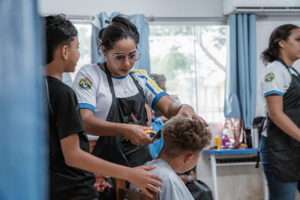 “A gente fica muito grato por esse apoio que o projeto dá com a nossa comunidade e com as nossas crianças. Nossa comunidade sempre estará de portas abertas. Hoje é um dia maravilhoso e agradeço a todos que vieram compartilhar esse momento. Eu trouxe meus filhos, sobrinhos e esposo para aproveitar e cortar o cabelo”, afirmou.