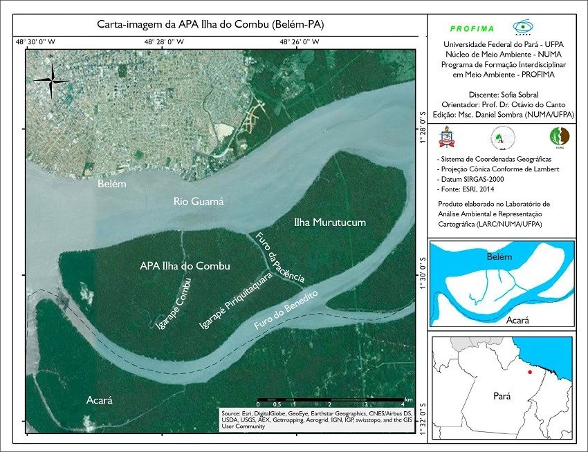 A Ilha do Combu é a quarta maior ilha do município de Belém, com 15,9 quilômetros quadrados de extensão, localizada a apenas 1,5 quilômetro do centro da capital paraense. Cercada pelo rio Guamá, pelo furo São Benedito, pelo furo da Paciência e pela Baía do Guajará, o Combu forma um mosaico de rios, igarapés e floresta de várzea que sustenta uma população estimada em cerca de 1,5 mil habitantes, segundo a Prefeitura de Belém (furos são espécies de “canais” de água, formados naturalmente próximos a rios e lagos).