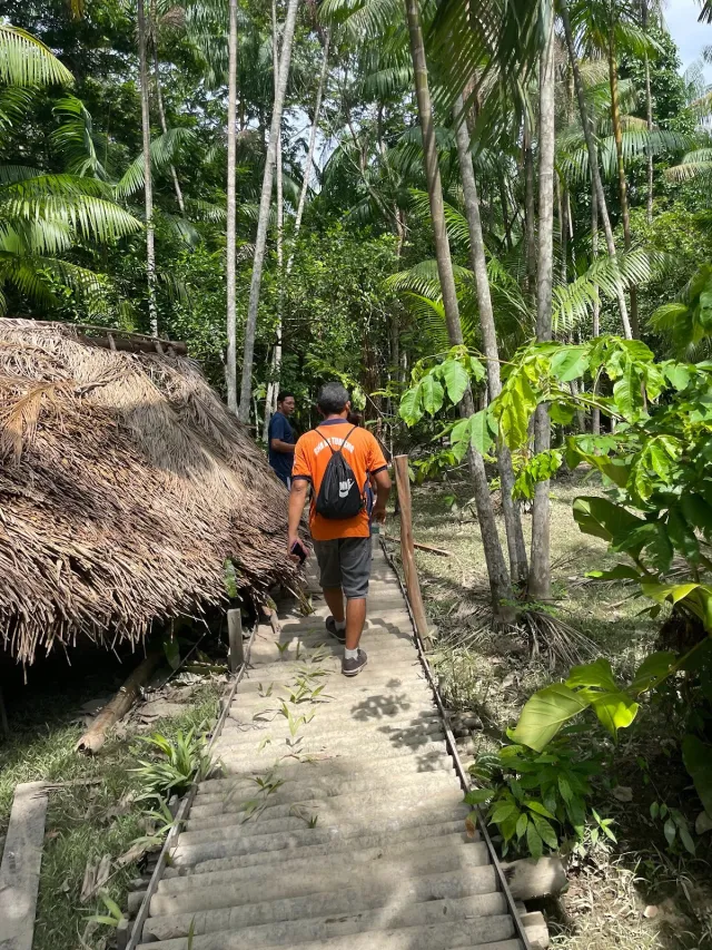 A família é exemplo de quem tem buscado novos caminhos para viver em harmonia com a floresta. Charles trabalhou boa parte da vida como madeireiro, derrubando árvores para a construção de casas. Há alguns anos, aposentou a motosserra e passou a investir em turismo de base comunitária. “Era muito triste ver uma árvore imensa, que levou centenas de anos pra crescer, cair em poucos minutos. Hoje, cem por cento da nossa renda vem da floresta em pé”, conta.